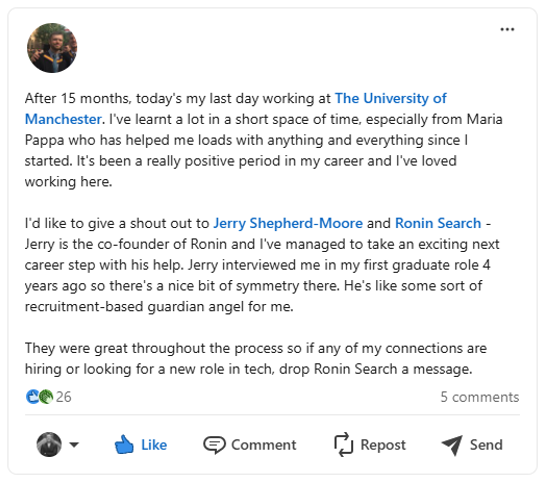 At Ronin Search every client, and every candidate, we work with has a one to one relationship at director level. Your recruitment needs will always be managed by experts with a deep understanding of your objectives.